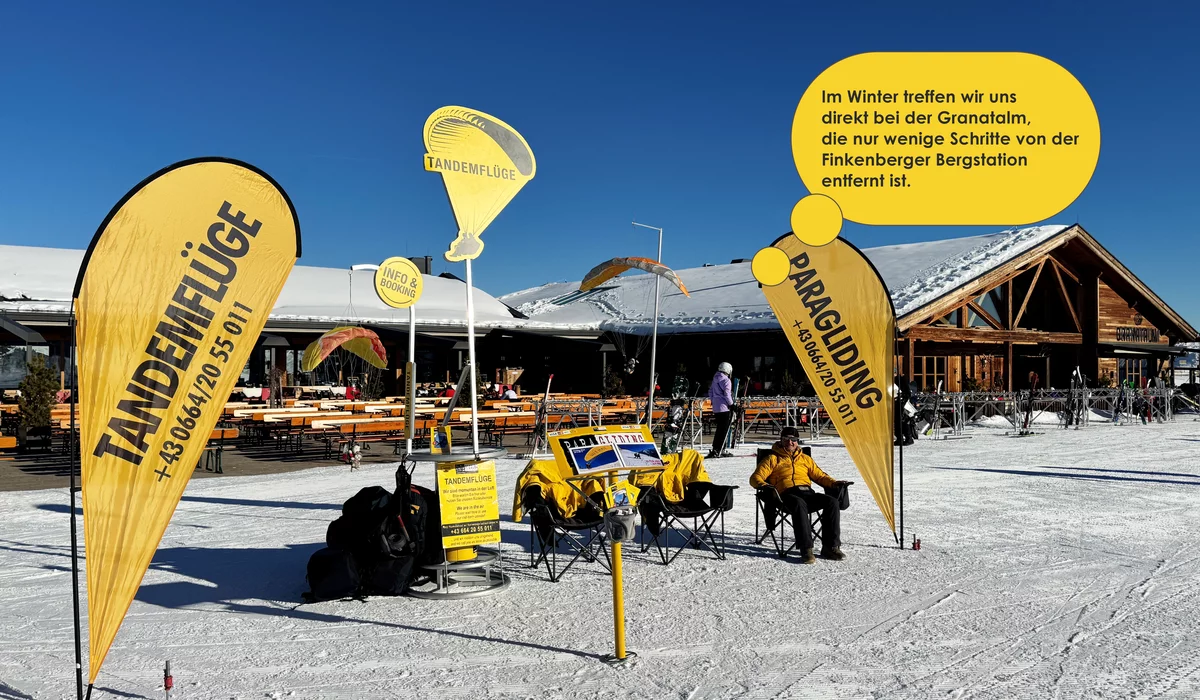 Treffpunkt im Winter bei der Granatalm (Finkenbergerbahn am Berg)